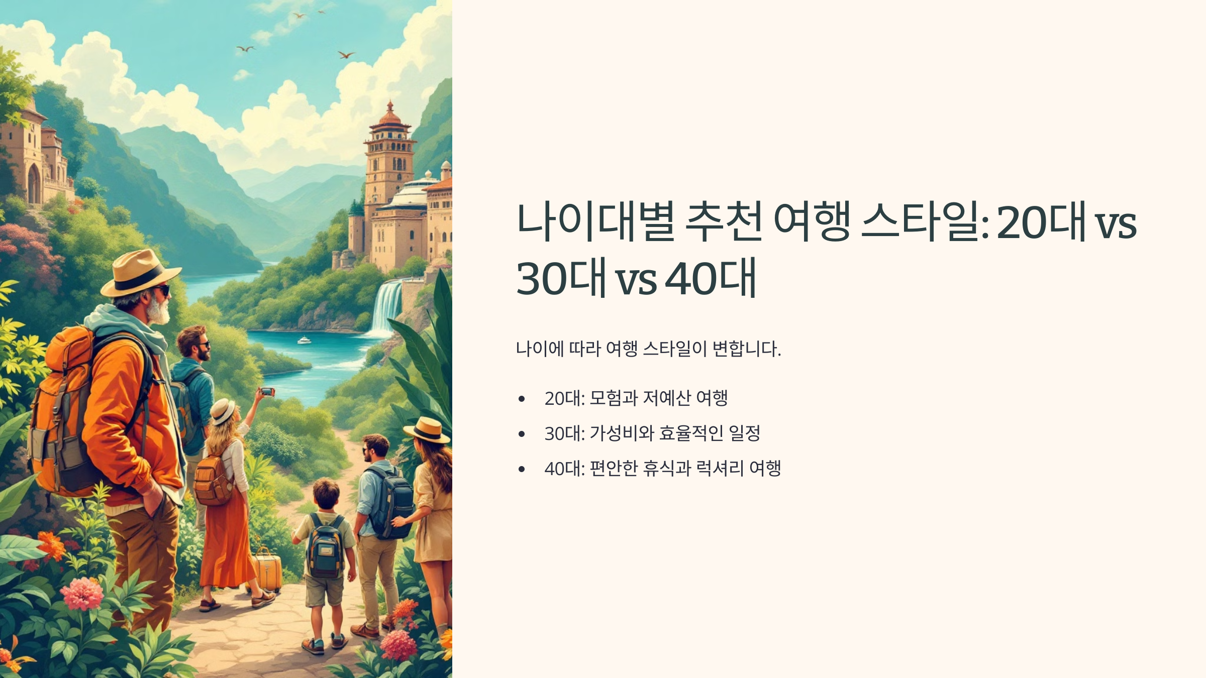 이번 글에서는 나이대별로 어울리는 여행 스타일과 추천 여행지를 소개하면서, 제 개인적인 경험도 함께 공유해 보겠습니다.